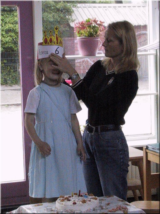 Foto's 2002 > 06-14 Mariska 6 Jaar Uitdelen Op School